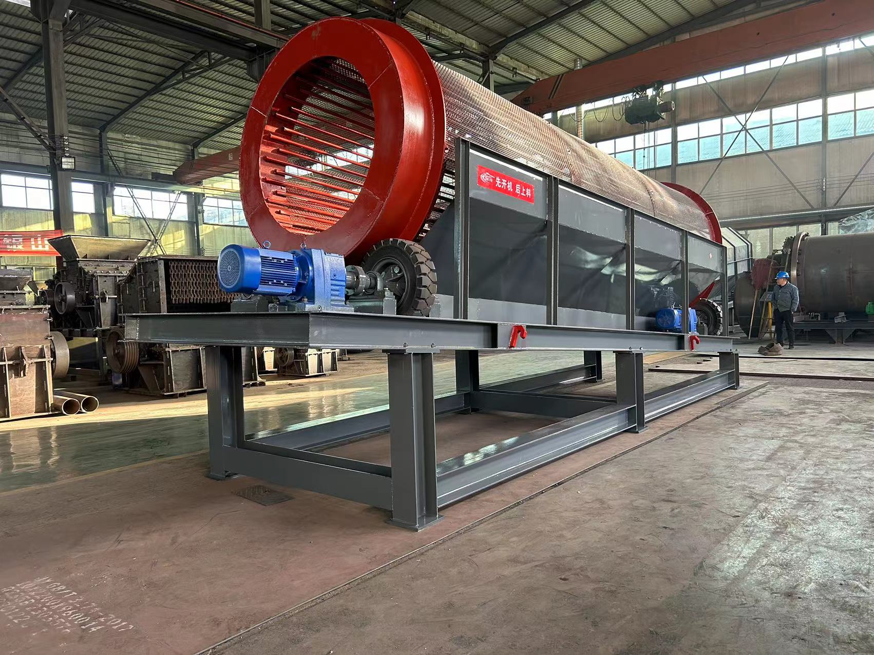無軸滾筒篩運行穩(wěn)定可靠。其結(jié)構(gòu)相對簡單,沒有復(fù)雜的傳動軸部件,減少了故障發(fā)生的概率,降低了維護(hù)成本。在運行過程中,噪音較小,振動幅度也相對較低,對周圍環(huán)境和操作人員的影響較小。同時,該設(shè)備還具有一定的環(huán)保性能,在篩分過程中能較好地控制物料的飛揚和散落,減少粉塵污染,符合環(huán)保要求。此外,設(shè)備的使用壽命較長,篩網(wǎng)更換相對方便,操作和維護(hù)都較為簡便,為企業(yè)的生產(chǎn)運營提供了便利。